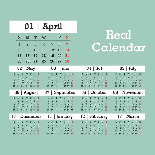 13-Month 28-Day Calendar | 364-Day Printable Planner | April-March Layout | SVG/PDF/PNG | Instant Download | Fresh Design!